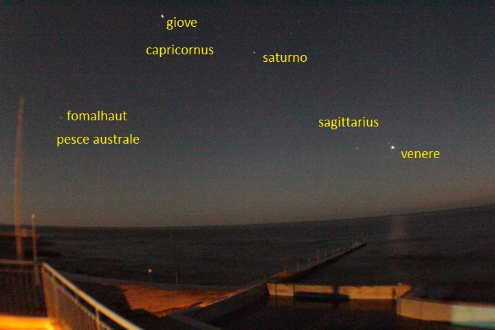 planetario Giove Saturno Venere con la stella Fomalhaut